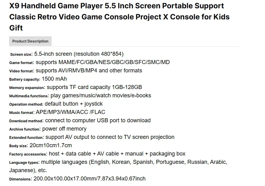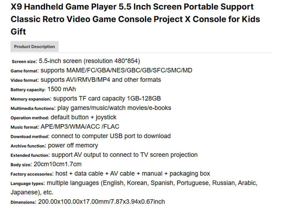 X9 Handheld Game Player 5.5 Inch Screen Portable Support Classic Retro Video Game Console Project X Console for Kids Gift